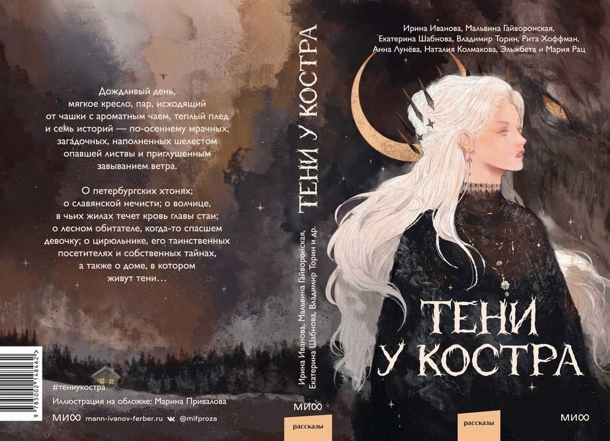 Тени у костра: [Тематический сборник рассказов от российских авторов к Хэллоуину] / Сост. не указан; Обложка Марины Приваловой. – М.: МИФ [ООО «Манн, Иванов и Фербер»], 2024. – 256 с. – (Red Violet. Темные миры). 6 000 экз. (п) ISBN 978-5-00214-846-2